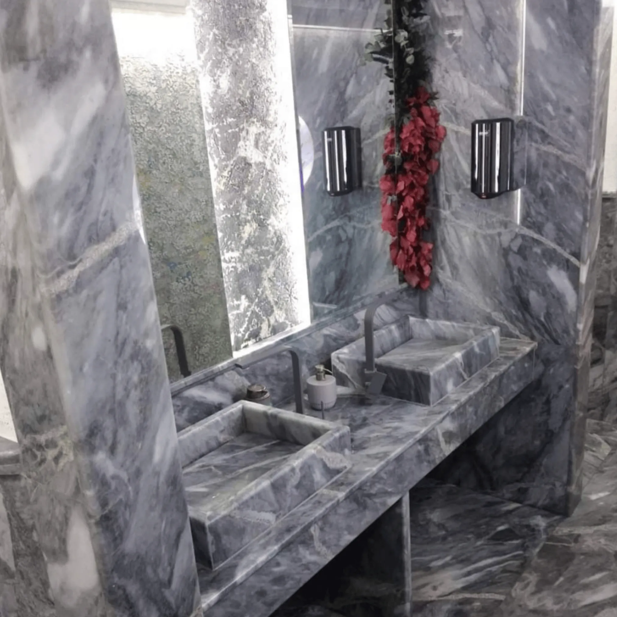 Естествен камък в сивата гама, подходящ за стъпала, подпрозоречни первази, шапки за тераси, облицовки на фасади, огради, прагове за врати, цокли, камини и плотове.