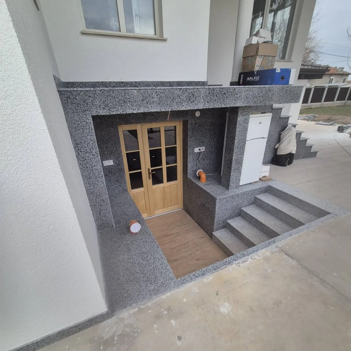 Готови полирани гранитни стъпала и чела със заобляне по дългата страна с размери: