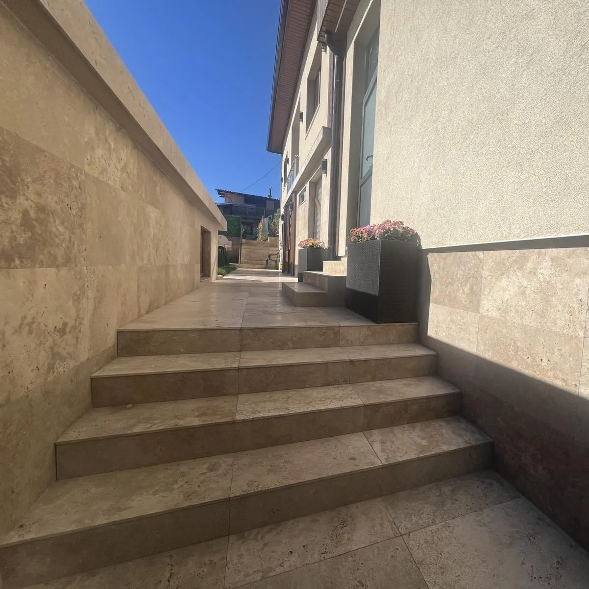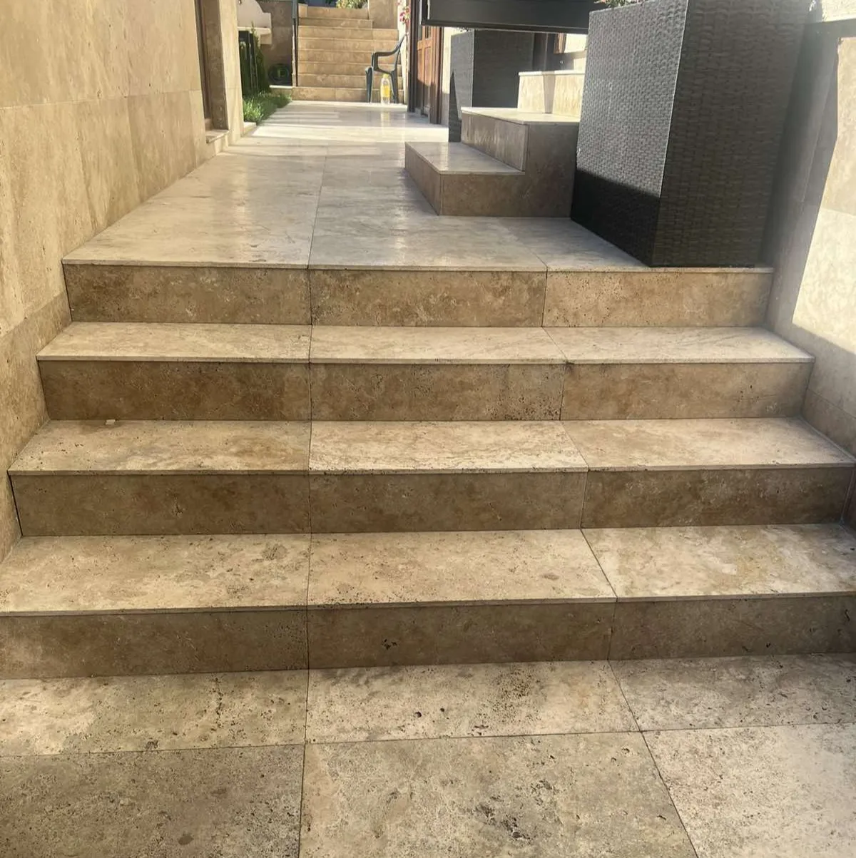 Травертинът е подходящ за облицовка на къщи, фасади, огради, цокъл, камини, бани, на стени зад телевизор и дивани, подови настилки, гръб на кухня, барбекюта, облицовки за басейни и спа центрове.
